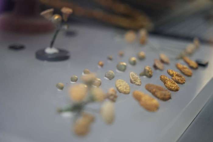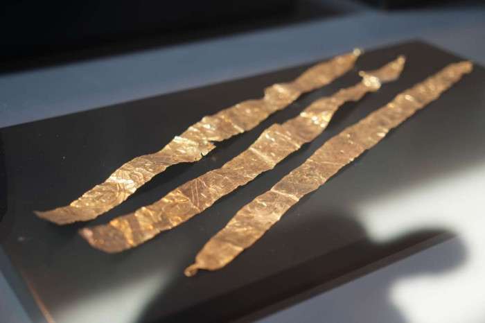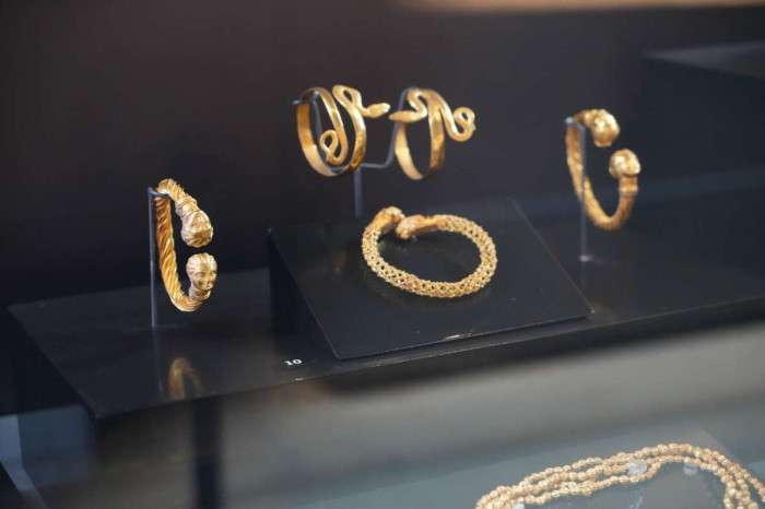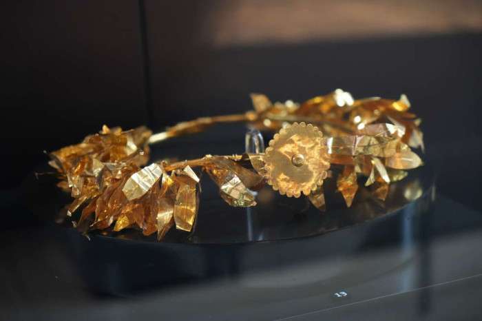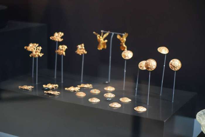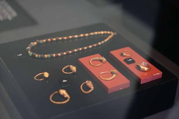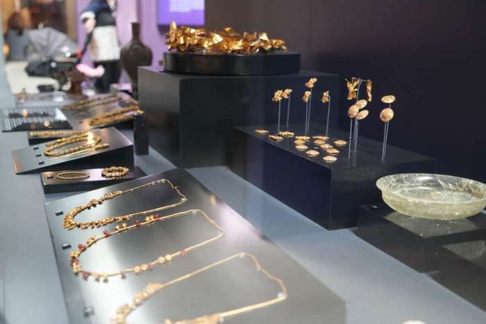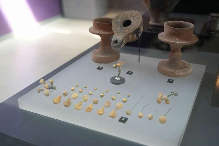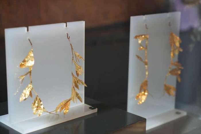 Altın taç, kurdele, bilezik, düğme, yüzük ve birçok eser sergileniyor