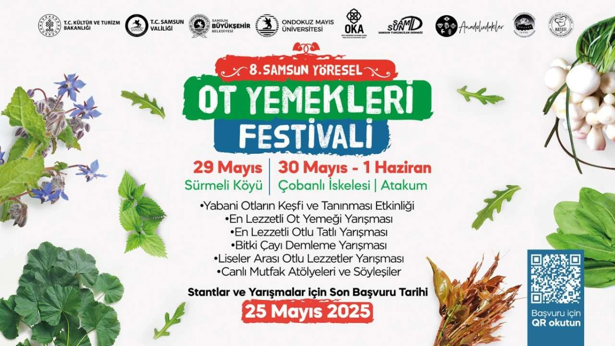 Zengin mutfak kültürüyle Karadeniz’in gastronomi başkentlerinden biri haline gelen Samsun’da düzenlenecek olan 8. Samsıın Yöresel Ot Yemekleri Festivali için geri sayım başladı. 29 Mayıs Bafra Sürmeli Köyü’nde 30-31 Mayıs ve 1 Haziran tarihlerinde Çobanlı İskelesi’nde gerçekleştirilecek festivalin son başvuru tarihi ise 25 Mayıs 2025.