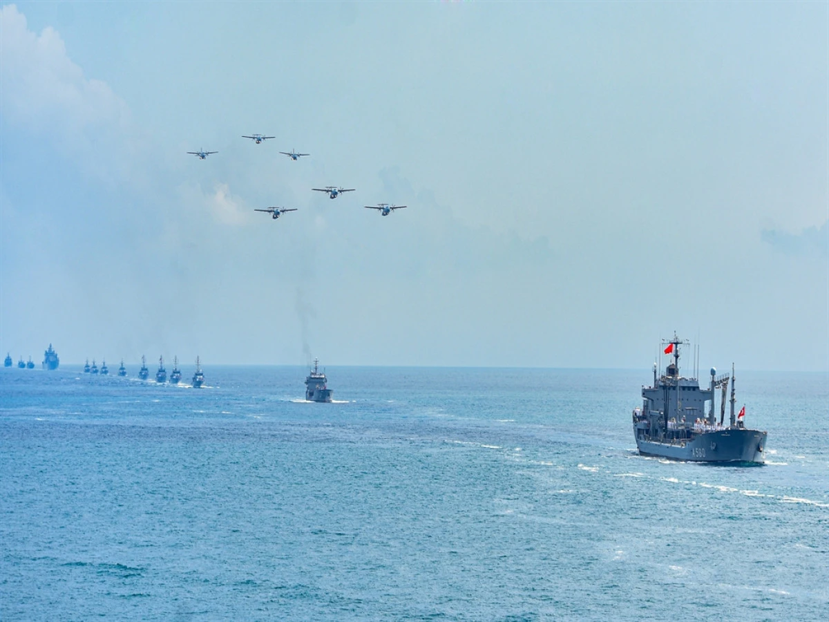 Günün sonunda tatbikata katılan deniz ve hava araçlarının katılımıyla denizde tören geçişi düzenlendi. Törende TCG Anadolu Gemisi'nin yanından geçen gemiler ve uçaklar gemideki kuvvet komutanlarına selam vererek geçiş yaptı. (DHA)
