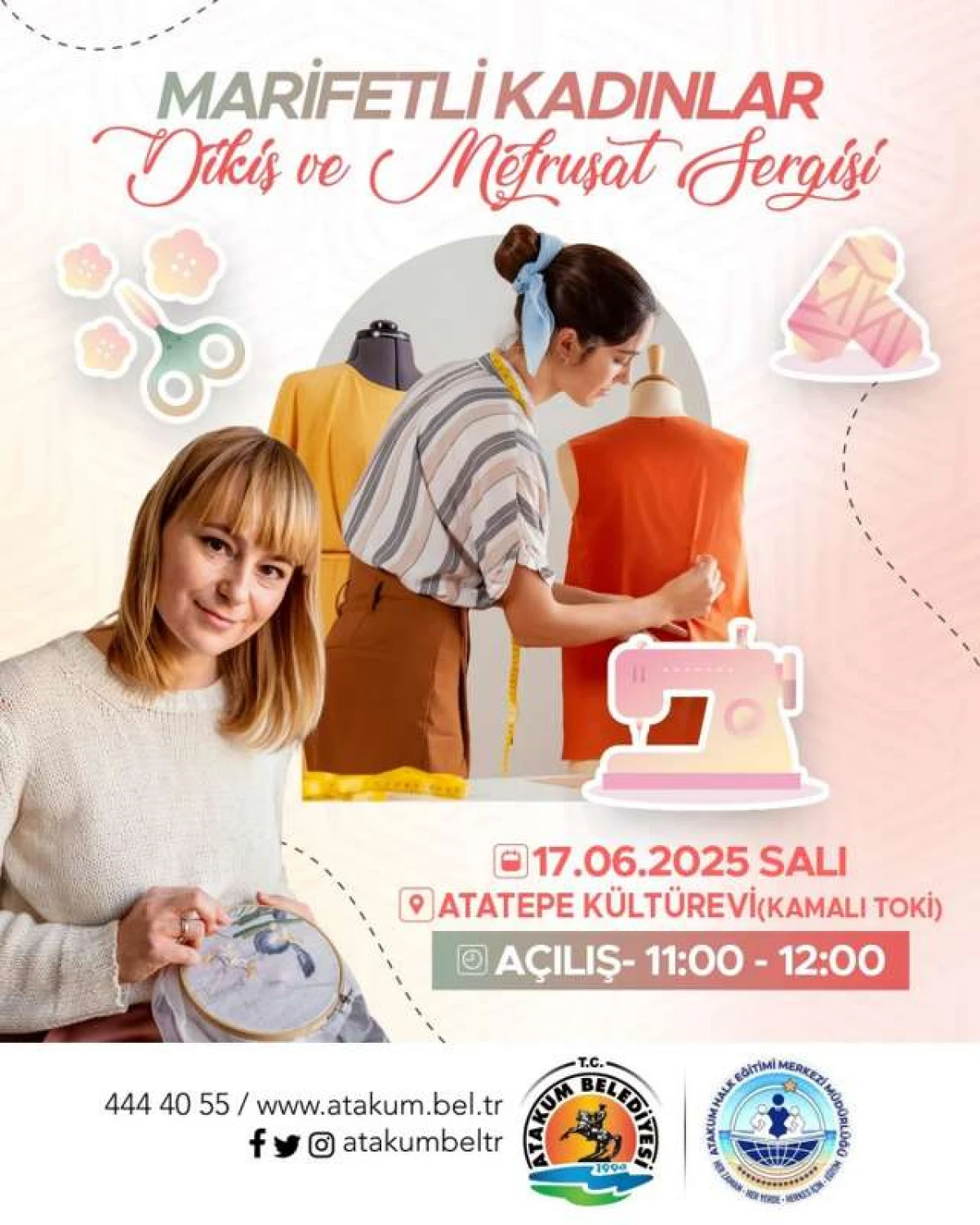 Atakum Belediyesi ile Atakum Halk Eğitim Merkezi Müdürlüğü iş birliği ile ‘Marifetli Kadınlar Dikiş ve Mefruşat Sergisi’ Atatepe Kültür Sanat ve Eğitim Merkezinde vatandaşlarla buluşacak. Merkezin kurslarına katılan emekçi kadınların el emeği ürünlerinin yer aldığı sergi, 17 Haziran Salı günü saat 11.00’de kapılarını açacak. Sergide dikişten nakışa ve mefruşata el emeği göz nuru eserler, sergilenecek.