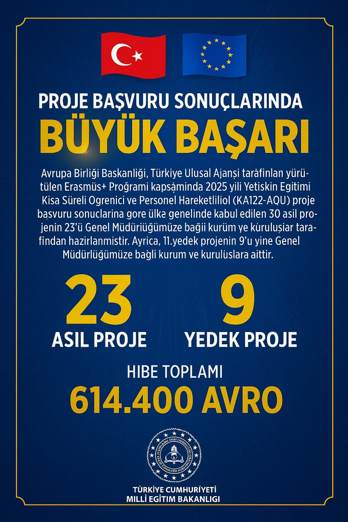 Atakum Halk Eğitimi Merkezi, T.C. Dışişleri Bakanlığı Avrupa Birliği Başkanlığı Türkiye Ulusal Ajansı tarafından kabul edilen Erasmus+ Programı Yetişkin Eğitimi Öğrenci ve Personel Hareketliliği (KA-122 ADU) Projesi ile Türkiye genelinde seçilen 23 kurumdan biri oldu.