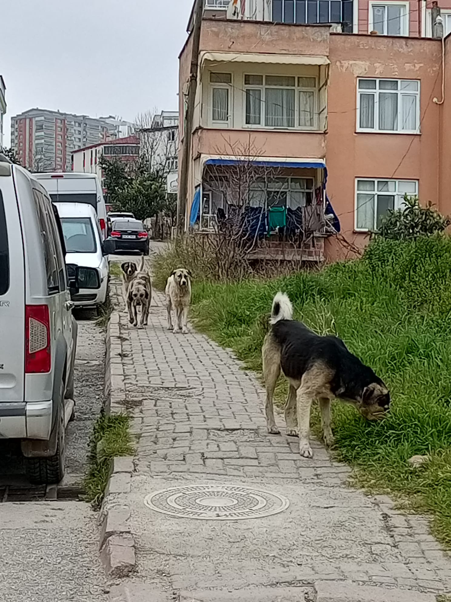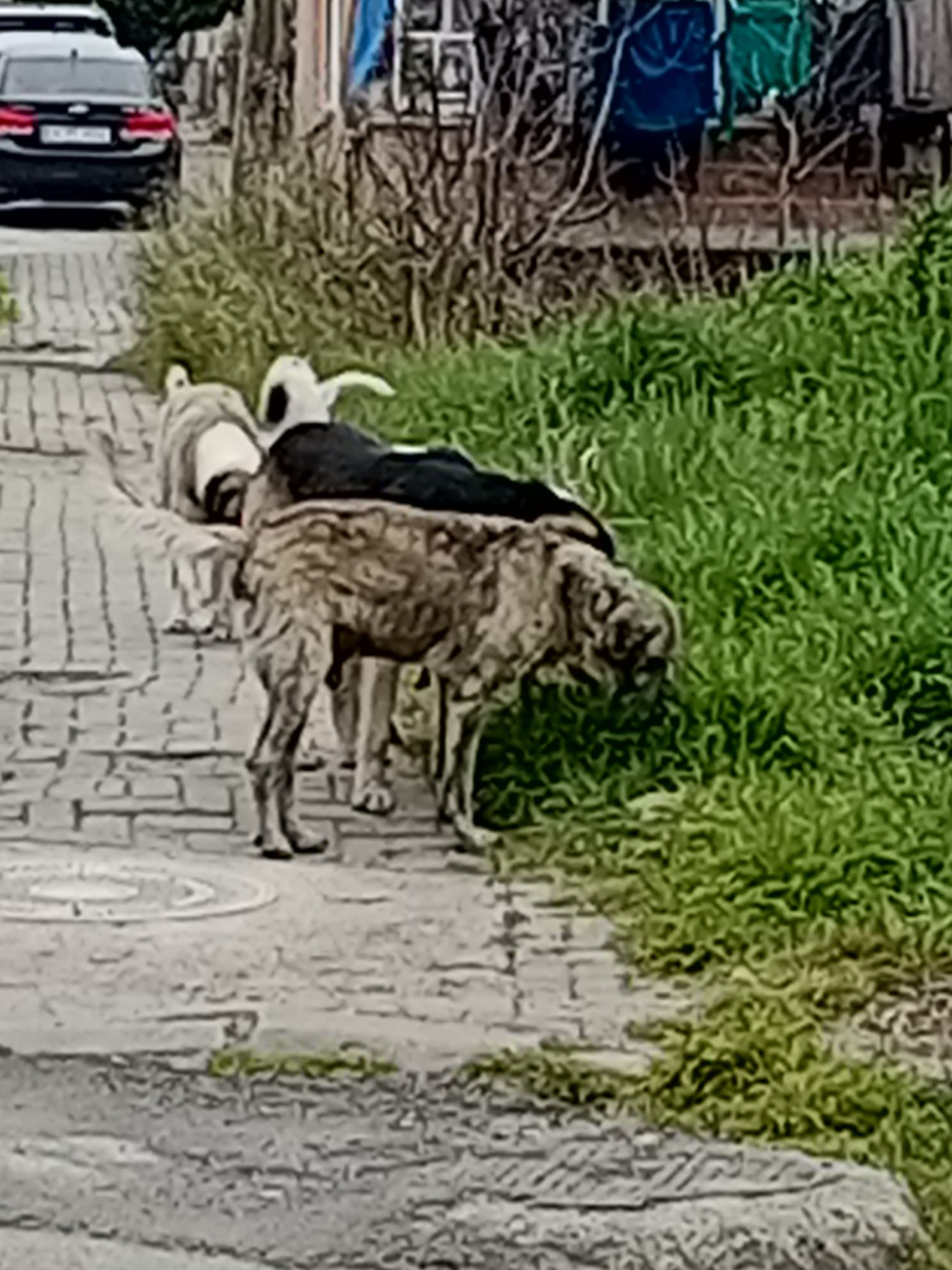 Mahallede çekilen görüntülerde de kaldırım üzerinde birden fazla köpeğin birlikte dolaştığı ve çevredeki alanlarda gezindiği görülüyor. Vatandaşlar, özellikle okul çevrelerinde gerekli önlemlerin alınması gerektiğini vurguluyor.