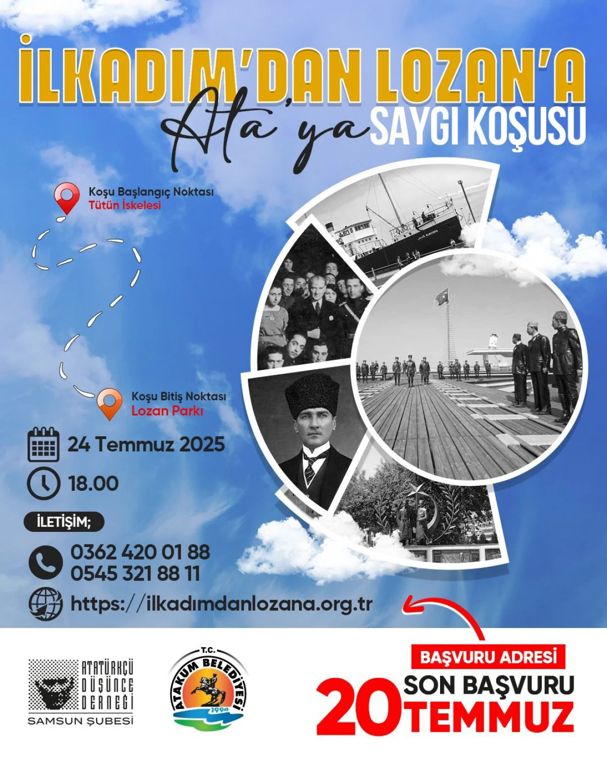 Atakum Belediyesi ve Atatürkçü Düşünce Derneği (ADD) Samsun Şubesi iş birliğiyle, Lozan Barış Antlaşması’nın 102. yıl dönümünde ‘İlkadım’dan Lozan’a Ata’ya saygı koşusu’ düzenleniyor.