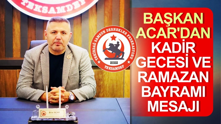 Tekirdağ Samsun Dernekler Federasyonu Başkanı ve Eski Güreş Ağası Bilal Acar, bugün idrak edilecek Kadir Gecesi ve yaklaşan Ramazan bayramı öncesi bir mesaj yayınladı.