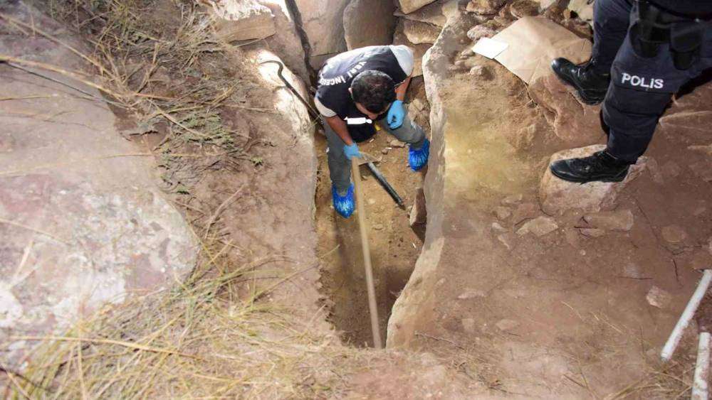 Kayseri’de kaçak kazı yapan defineciler polisin geldiğini görünce kaçarken; ekipler şahısların arkasında bıraktığı malzemelerden kriminal inceleme başlattı.Melikgazi ilçesine Mimarsinan Mahallesi Basın TOKİ Sitesi’nin içerisinden geçen derede şahısların kazı yaptığını fark eden vatandaşlar durumu ihbar etti. İhbar üzerine bölgeye polis ekipleri sevk edildi. Şüpheli şahısların polisleri görünce kaçarken, arkalarında kazı aletlerinin yanı sıra sigara izmaritleri ile su şişesi ve enerji içeceği kutusu bıraktı. Cumhuriyet Savcısı’nın talimatıyla ekipler tarafından olay yerindeki kazı aletlerine el konulurken, olay yeri inceleme ekipleri de kazı alanında çalışma yaptı. Kaza alanında bırakılan sigara izmaritleri ile su şişesi ve enerji içeceği kutu üzerinde parmak izi ve tükürükten (salya) biyolojik araştırma yapılacağı belirtildi.Olayla ilgili soruşturma başlatıldı.