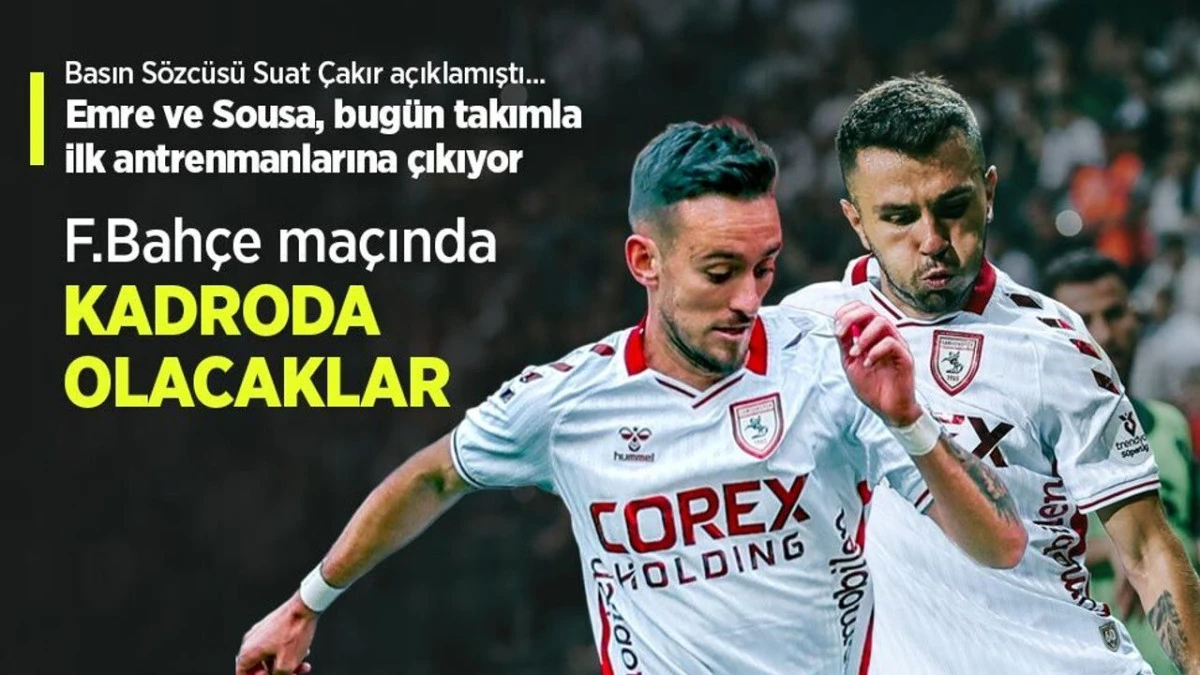 Samsunspor'da sakatlıktan dönen Emre Kılınç ve Afonso Sousa'nın hafta sonu oynanacak Fenerbahçe maçında kadroda olup olmayacağını merak ediyor. Basın Sözcüsü Suat Çakır'ın UEFA Konferans Ligi maçı öncesi camiaya duyurduğu müjdeli haber sonrası taraftarlarında heyecanlı bir bekleyiş hakim. Kırmızı beyazlı ekibin bugün başlayacak Fenerbahçe maçı hazırlıklarında bu iki yıldız oyuncunun yer alması bekleniyor.