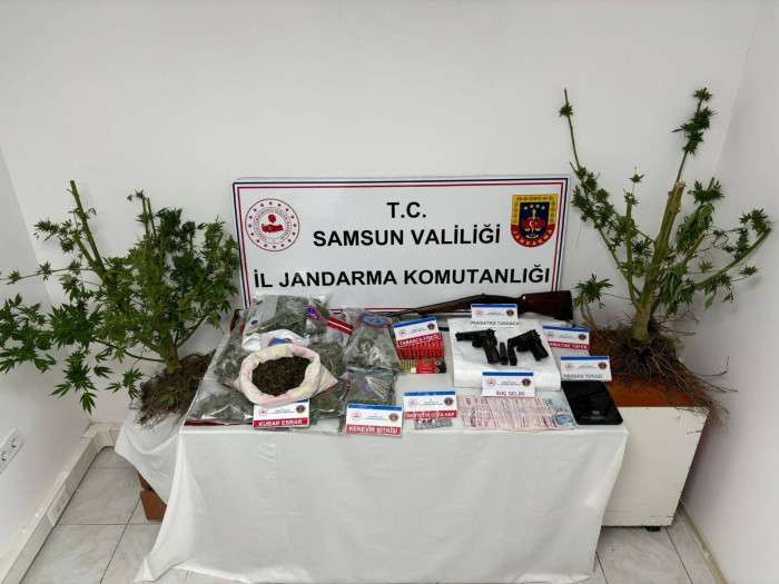 Edinilen bilgiye göre, Samsun'un Atakum ilçesinde jandarma ekipleri tarafından uyuşturucu ve uyarıcı madde ticaretinin önlenmesine yönelik yapılan araştırma sonucu F.E.Y. (32), M.A.Y.(23), A.H.(51) ve U.H.(29) isimli şahısların uyuşturucu madde ticareti yaptıkları bilgisine ulaştı. Samsun İl Jandarma Komutanlığı Kaçakçılık ve Organize Suçlarla Mücadele (KOM) Şube Müdürlüğü ve Atakum İlçe Jandarma Komutanlığı ekiplerince şahısların evlerine operasyon düzenlendi. Narkotik dedektör köpeği Tahra'nın da katıldığı aramalarda evlerin, çatı aralarında, çekyat altında ve buzdolabı altına zulalanmış uyuşturucu madde ele geçirildi. Yapılan aramalarda 8 kilo 571 gram kubar esrar, 4 adet sentetik ecza hap, 6 kök kenevir bitkisi, 1 adet hassas terazi, 1 adet ruhsatsız 9 mm çapında tabanca ve 350 adet 9 mm çapında fişek ele geçirildi.