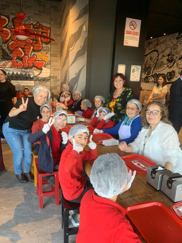 Bir yanda hayat tecrübelerinden süzülen sözleriyle çocuklara rehberlik eden büyüklerimiz; diğer yanda heyecanla hamburger hazırlayan minikler…