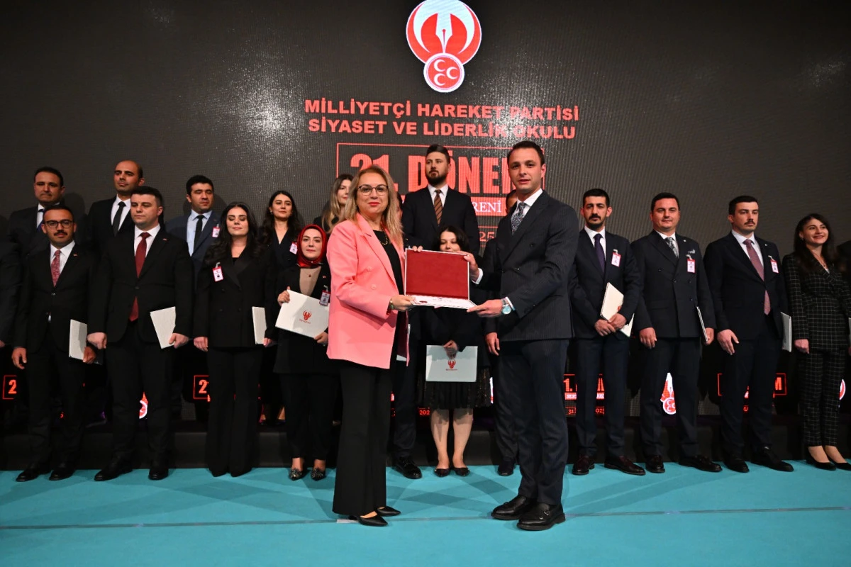 Milliyetçi Hareket Partisi (MHP) bünyesinde, parti politikalarına ve liderlik vasıflarına hakim kadrolar yetiştirmek amacıyla düzenlenen ve büyük önem atfedilen MHP 21. Dönem Siyaset ve Liderlik Okulu, başarılı bir eğitim dönemini daha geride bıraktı.
