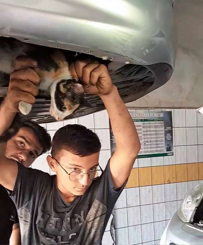 Kendi imkanları ile kediyi sıkıştığı yerden kurtaramayan Baş, çekici çağırarak aracını sanayiye götürdü. Bu esnada veterinere de haber veren İsa Baş, kediyle beraber sanayiye gitti. Kaput kısmında kediye ulaşılmasında engel oluşturan bölgelerin sökülmesinin ardından ayağından kayışa takılan kedi kurtarıldı. İlk müdahalesi sanayiye çağırılan veteriner tarafından yapılan yaralı kedi daha sonra İsa Baş tarafından Samsun'daki hayvan hastanesine götürüldü.