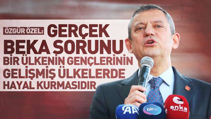 CHP Genel Başkanı Özgür Özel, "Gerçek beka sorunu bir ülkenin gençlerinin, dünyanın gelişmiş ülkelerinde hayal kurmasıdır. Elbette şartlar kötü olabilir. Vize sorunları bunaltıyor olabilir. Dünyanın diğer ülkeleri bugün için insana cazip geliyor olabilir. Ama şunu biliniz ki dünyanın en kıymetli ülkesinde, en güzel coğrafyasında ve toprakları en ağır bedeller ödenerek kurtarılmış bir ülkede yaşıyoruz" dedi.
