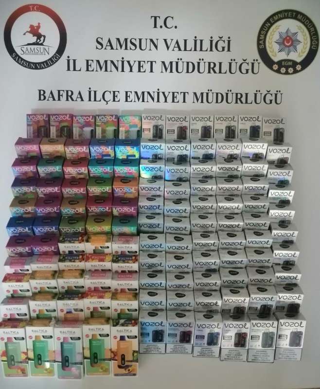 Samsun'da polis ekipleri tarafından yapılan çalışma sonucu 156 adet gümrük kaçağı elektronik sigara ele geçirildi.