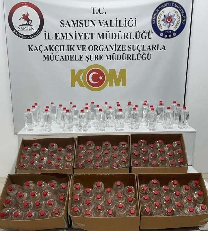 Samsun'da polis tarafından şişeler içinde 198 litre etil alkol ele geçirildi.