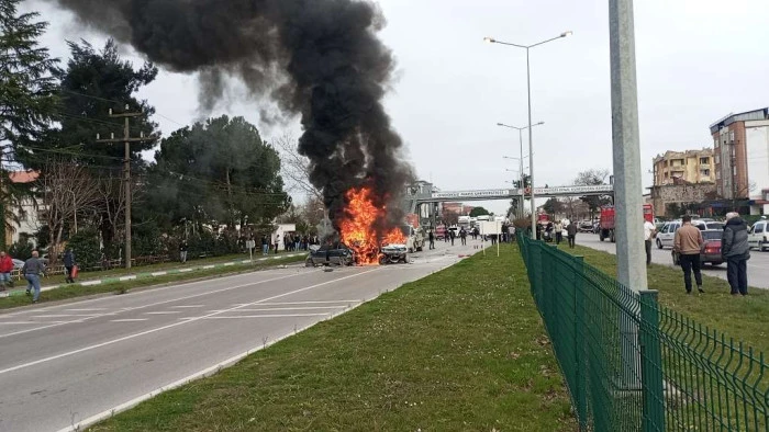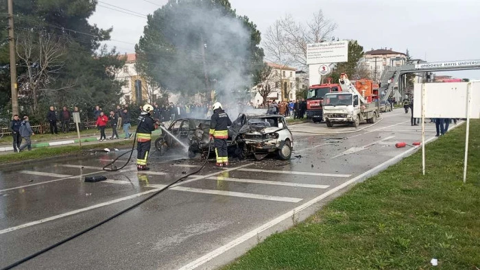 SAMSUN'un Çarşamba ilçesinde 6 aracın karıştığı zincirleme kaza sonrası yangın çıktı. 3 araç yangında kullanılamaz hale gelirken, kazada 3 kişi yaralandı.