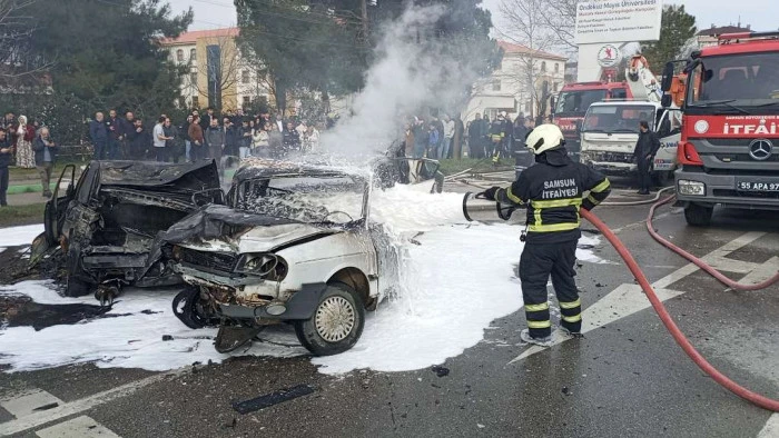 Kaza, saat 15.30 sıralarında Çarşamba ilçesi Yeni Samsun Caddesi'nde meydana geldi. Caddede 6 aracın karıştığı zincirleme kaza yaşandı. Çarpışmanın ardından araçların birinde çıkan yangın, 2 araca daha sıçradı. İhbarla olay yerine itfaiye, polis ve sağlık ekipleri sevk edildi. Kazada yaralanan 3 kişi, ambulanslarla hastaneye kaldırıldı. Yangın söndürülürken, 3 araç tamamen kullanılmaz hale geldi.