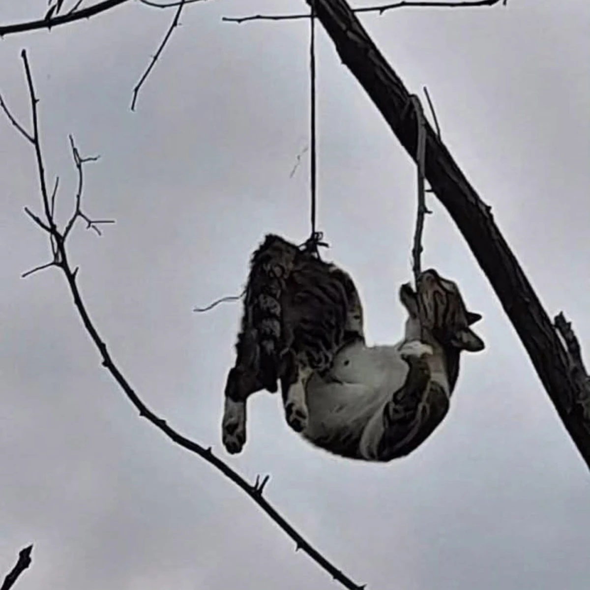 SAMSUN’un Tekkeköy ilçesinde bir kedi, ayakları ve başından ağaç dalına asılı halde bulundu. Çevredekilerin müdahalesiyle kurtarılan kedi, bakıma alındı.