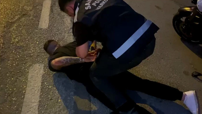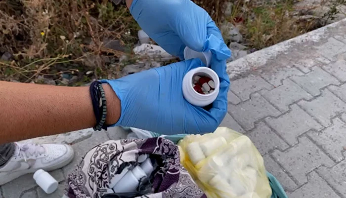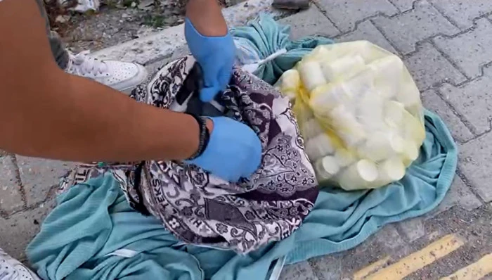 İl Emniyet Müdürlüğü ekipleri, 18 yaşından küçük bir çocuğun uyuşturucu madde sattığını tespit etmesi üzerine şüpheliyi takibe aldı. Şüphelinin, K.K.’ye (20) çarşafa sarılıp bağlanmış bir malzeme verdiği görüldü. K.K.’yi takip eden ekipler, şüpheliyi bir sokakta yakaladı. Yapılan aramalarda, çarşafın içine sarılı 7 bin 497 sentetik hap ele geçirildi. O anlar cep telefonu kamerasıyla kaydedildi.