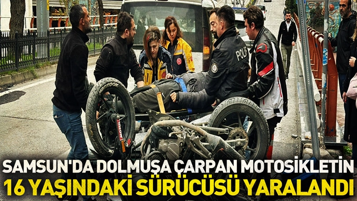 SAMSUN’un İlkadım ilçesinde dolmuşa arkadan çarpan motosikletin sürücüsü Arda U. (16), yaralandı.