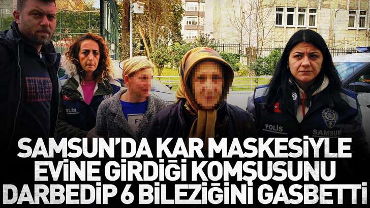 SAMSUN'un Atakum ilçesinde kar maskesiyle evine gittiği komşusu Hafya A.'yı (68) darbedip, kolundaki 6 bileziği gasbeden Emine B. (45) ile akrabası, gözaltına alındı.