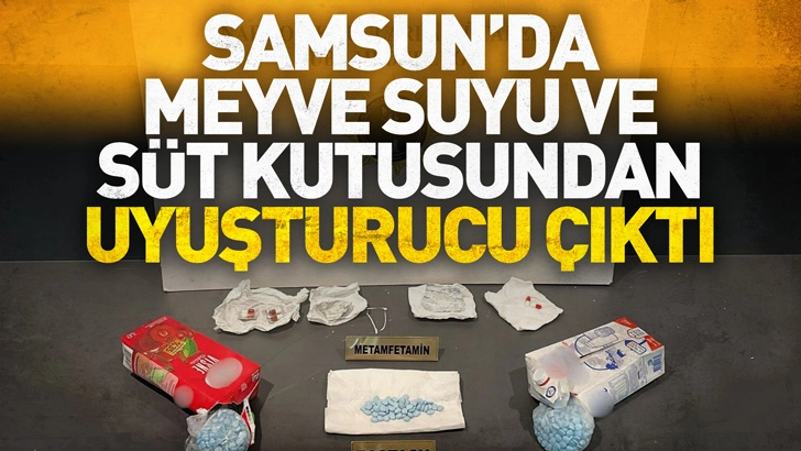 SAMSUN'da narkotik polisin düzenlediği operasyonda meyve suyu ve süt kutularının içine gizlenmiş uyuşturucu bulundu.