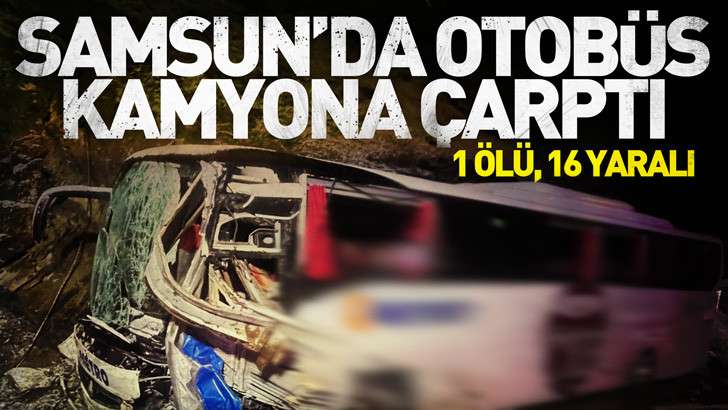 SAMSUN'un Kavak ilçesinde yolcu otobüsünün kamyona çarptığı kazada şoför Şahin Çayan (63) hayatını kaybetti, 16 yolcu yaralandı.