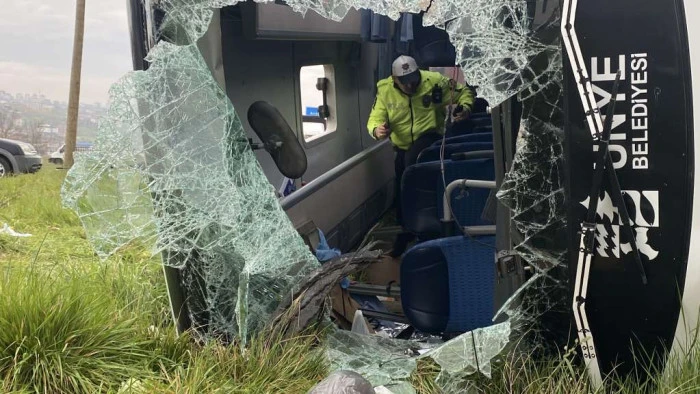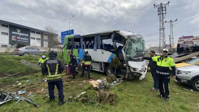 Samsun’da devrilen otobüsün İstanbul’daki FIRST Robotics Competition (FRC) 2026 adlı yarışmadan Ordu’ya dönen öğrencileri taşıdığı belirtildi. Kazada, sürücü Tuncay G. (39), yedek şoför Nusret Ö. (44), Ünye Fen Lisesi’nden A.M.E. (16), E.K. (20), Z.B.K. (17), M.H.Ö. (17), E.S.Ş. (17), K.M.E. (15), İ.S.Ö. (16), A.T.K. (16) ve A.Z.Ö. (16) isimli öğrenciler yaralandı. B.D. (64), F.S.M.C. (44), N.M.Ç. (49) ve Y.Ç. (44) isimli öğretmenler tedbir amaçlı hastaneye götürüldü. Bir öğrencinin kolunun koptuğu ve ağır yaralı olduğu, diğer yaralıların ise durumunun iyi olduğu belirtildi.