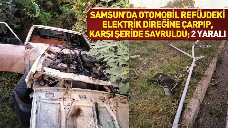 Samsun'da otomobil refüjdeki elektrik direğine çarpıp, karşı şeride savruldu; 2 yaralı