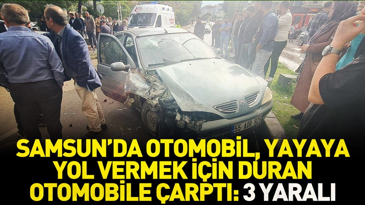 Samsun'da otomobil, yayaya yol vermek için duran otomobile çarptı: 3 yaralı