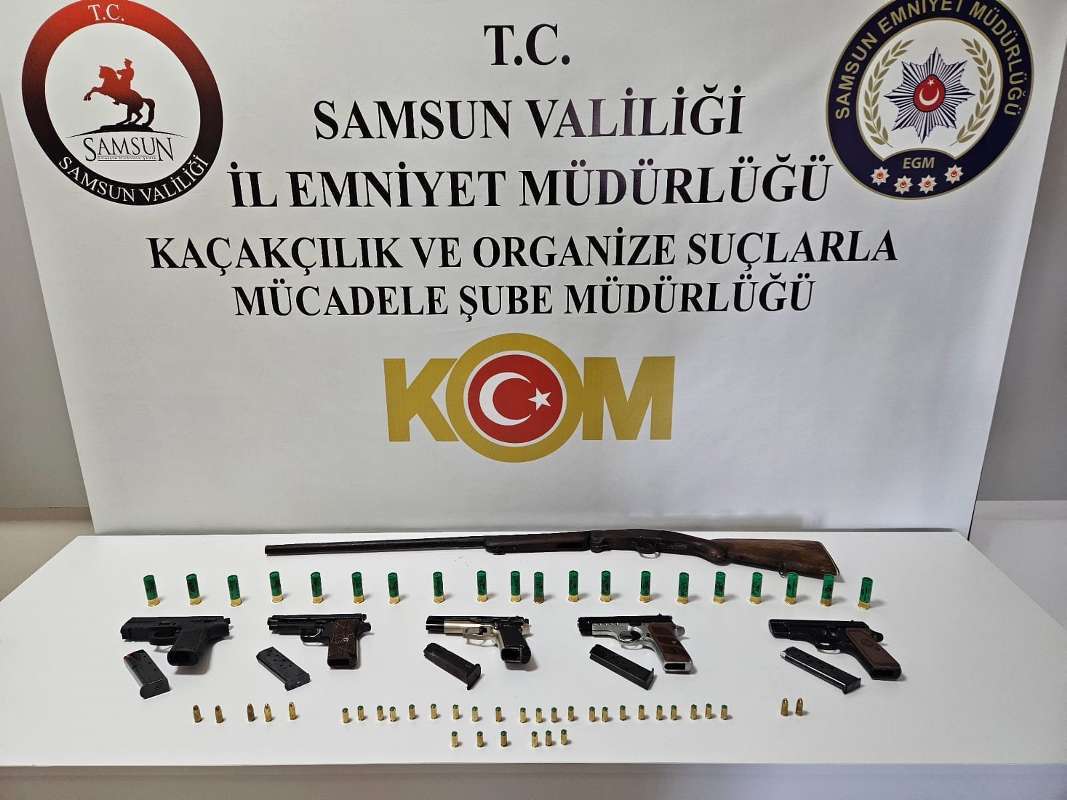 Edinilen bilgiye göre, Samsun Emniyet Müdürlüğü Kaçakçılık ve Organize Suçlarla Mücadele Şube Müdürlüğü ve Narkotik Suçlarla Mücadele Şube Müdürlüğü ekipleri, Çarşamba ve Tekkeköy ilçelerinde operasyon düzenledi. Adreslerde yapılan aramalarda 4 adet ruhsatsız tabanca, 1 adet kurusıkı tabanca, 1 adet ruhsatsız tüfek, 8 adet tabanca fişeği ve 20 tane kartuş ele geçirdi. Olayla ilgili 2 kişi gözaltına alındı.