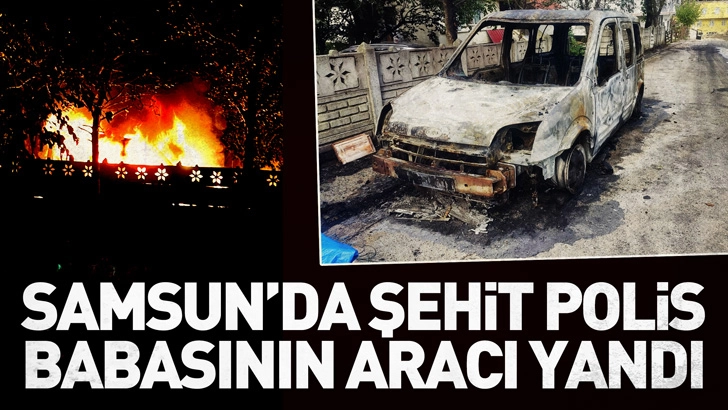 Samsun'da şehit polis memurunun babasının aracı, park halindeyken yandı