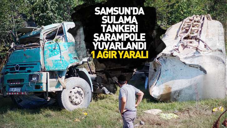 Samsun'da sulama tankeri şarampole yuvarlandı: 1 ağır yaralı