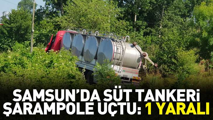 Samsun’da kontrolden çıkan süt tankeri şarampole uçtu, sürücü yaralandı.