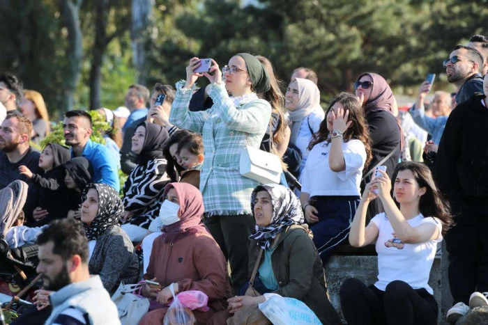 Samsun semalarında yaklaşık 1 saat gösteri uçuşu gerçekleştiren Solo Türk ve Türk Yıldızları’nın gösterilerini kentin farklı bölgelerinde heyecanla takip edenler, cep telefonlarıyla da bu anı ölümsüzleştirdi.