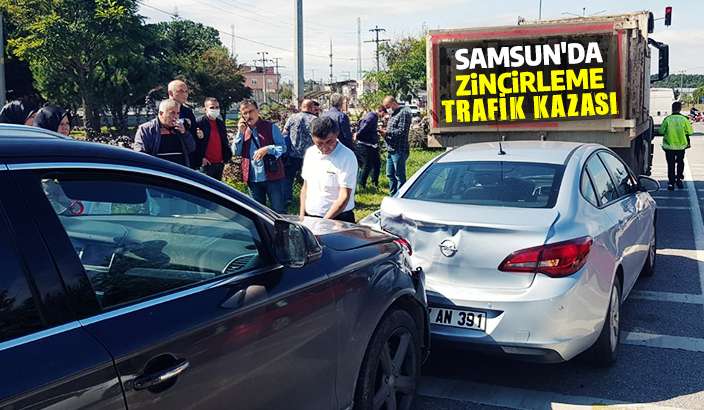 Samsun’da kamyon ve 2 aracın karıştığı zincirleme kaza maddi hasarlı olarak atlatıldı.