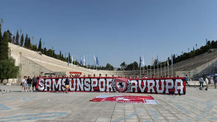 UEFA Avrupa Ligi Play-Off ilk maçında Panathinaikos ile karşılaşacak Samsunspor’un taraftarları, Atina’nın Kallimarmaron semtinde bir araya geldi. Türkiye’nin yanı sıra Avrupa’nın farklı ülkelerinden gelen kırmızı-beyazlı taraftarlar, ellerindeki bayraklarla kenti renklendirdi. Samsunspor tezahüratlarıyla Atina sokaklarını inleten taraftarlar, maç öncesinde takımlarına destek gösterisinde bulundu. Polis ekipleri bölgede güvenlik önlemleri alırken, taraftarların coşkulu kutlamaları renkli görüntülere sahne oldu.