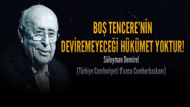 Süleyman Demirel'in siyasi hayatı boyunca sıkça dile getirdiği "boş tencere iktidarı götürür" sözü, Türkiye siyasetinde önemli bir yere sahiptir. Bu söz, ekonomik durumun siyasi istikrar üzerindeki etkisi hakkında önemli bir tespit olarak kabul edilir.
