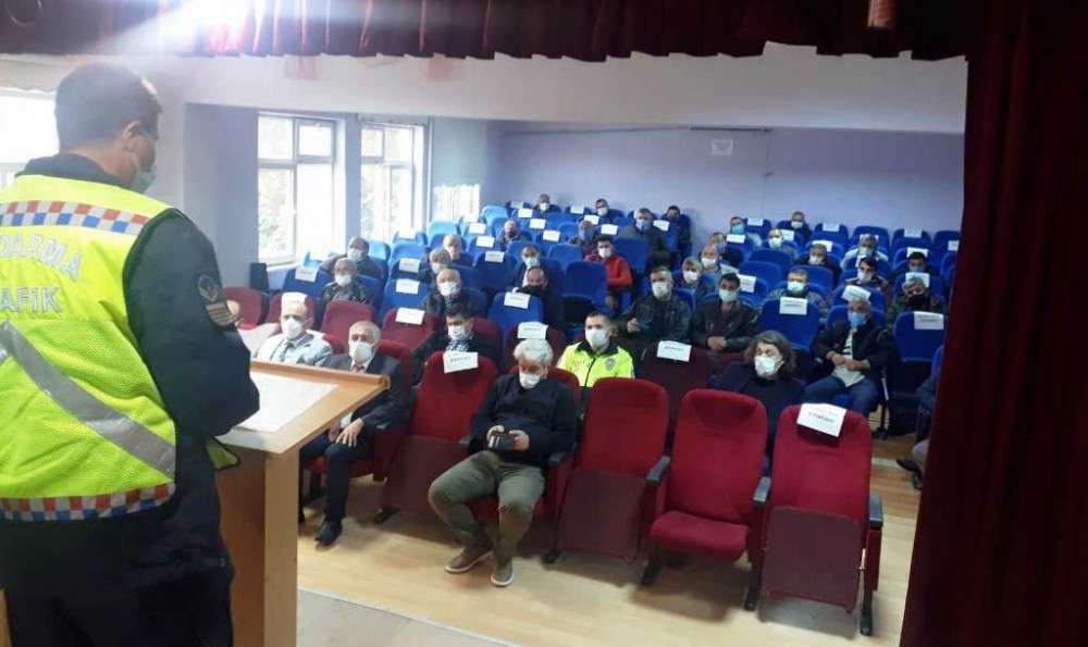 Kozköy Ortaokulu konferans salonunda düzenlenen seminerde okul servis araçları ile taşımalı eğitim servis sürücülerine yönelik, taşımada çocukların trafik güvenliğini artıcı önlemlerin alınması konusunda yapılan bilgilendirmede yapıldı.