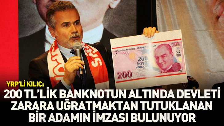 YRP'li Kılıç: 200 TL’lik banknotun altında devleti zarara uğratmaktan tutuklanan bir adamın imzası bulunuyor